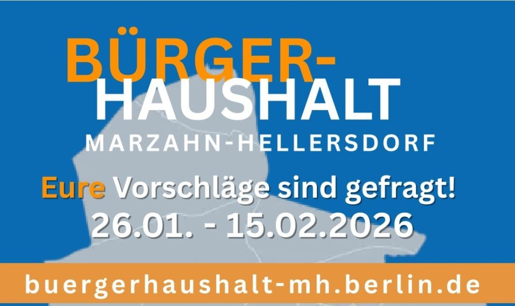 Das Bezirksamt Marzahn-Hellersdorf schaltet am Montag, den 26. Januar 2026, das neue Beteiligungsportal für den Bürgerhaushalt frei. Ab sofort können konkrete Vorschläge online unter Bürgerhaushalt Marzahn-Hellersdorf eingereicht werden. Wer Ideen hat, zum Beispiel für eine neue Parkbank, ein Kiezfest oder Sportangebote, kann diese bis zum 15. Februar 2026 vorschlagen. Dabei sind der Kreativität zunächst keine Grenzen gesetzt.